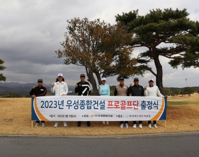 부산 유일 프로 골프단인 우성종합건설 골프단이 15일 부산 아시아드 컨트리클럽에서 2023시즌 출정식을 갖고 선전을 다짐했다. 우성종합건설 골프단 제공