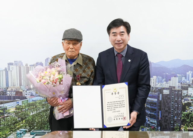 부산 부산진구청(구청장 김영욱)은 최근 국방부 육군본부 6·25 무공훈장 찾아주기 조사단과 연계해 6·25전쟁 참전 유공자인 하재식 씨에게 은성화랑무공훈장을 수여했다.