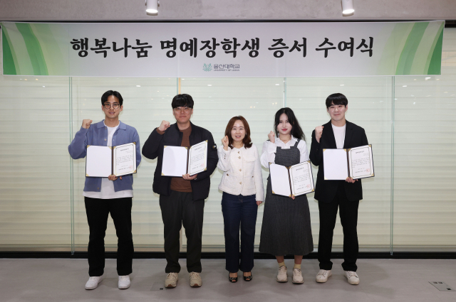 울산대학교는 교내 신학생회관 커리어라운지에서 행복나눔 명예장학생 증서 수여식을 열었다고 19일 밝혔다.