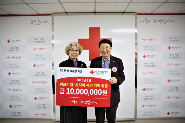 대한적십자사 부산지사(회장 서정의)는 최근 (주)용성 김무임 회장이 튀르키예·시리아 지진 피해민 지원을 위한 성금 1000만 원을 전달했다고 밝혔다.