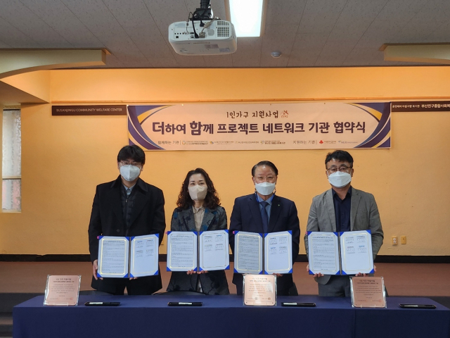 부산사회복지공동모금회(회장 최금식)·HUG주택도시보증공사(사장직무대행 이병훈)는 최근 1인 가구 지원사업 ‘더하여 함께 프로젝트’의 네트워크 기관 협약식을 진행했다.