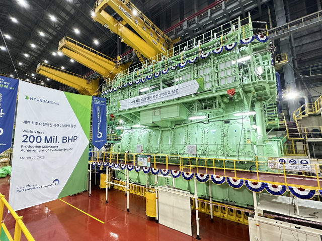 현대重, ‘선박 심장’ 대형엔진 누적 2억 마력 세계 최초 돌파
