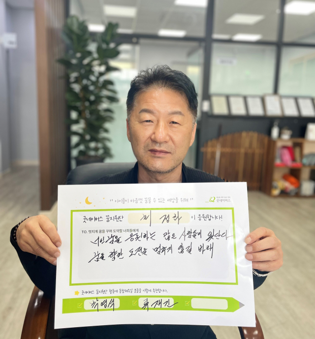 최정화 동성아이앤씨(주) 대표는 ‘너희 꿈을 응원하는 많은 사람들이 있으니 꿈을 향한 도전을 멈추지 않길 바란다’라는 메시지를 통해 꿈지원단 활동을 펼치겠다고 밝혔다.