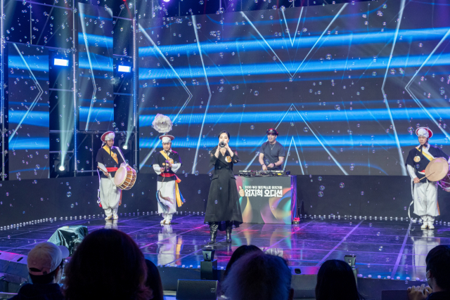 2030 부산월드엑스포 유치 기원 엄지척 오디션에서 김지윤 소리 숲 대표가 최우수상을 수상한 본선 장면. 부산상공회의소 제공