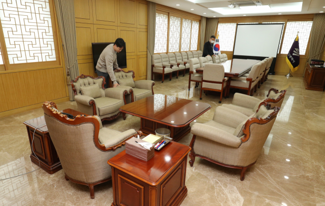 오는 31일 ‘부산시 열린행사장(옛 부산시장 관사)’에서 열릴 관사 보유 물품 ‘하우스세일’ 자선 경매 행사를 앞두고 진행요원들이 경매물품 전시를 준비하고 있다. 강선배 기자 ksun@
