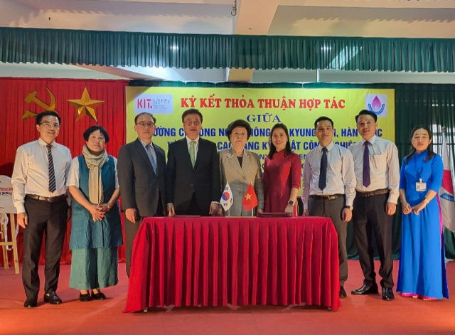 ‘KIT 한국어학당’ 은 베트남 현지 대학생을 대상으로 한국어를 교육하는 기관으로 1월 박하기술전문대학 내에 설립한 데 이어 두 번째다. 학교법인 동서학원 박동순 이사장과 경남정보대 김대식 총장은 지난 22일 베트남 현지를 방문해 ‘KIT 한국어학당’ 현판식을 가졌다.