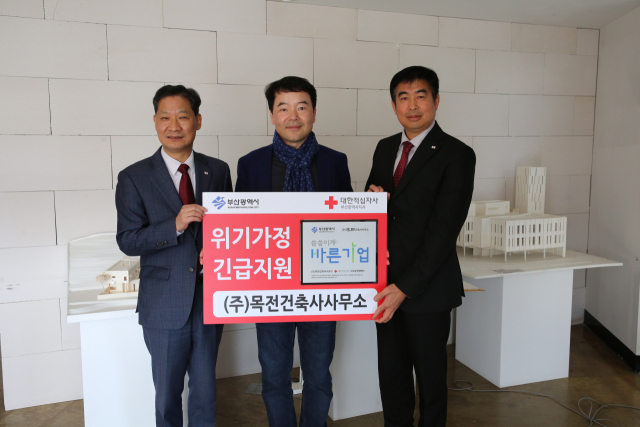 (주)목전건축사사무소(대표 박희준)는 최근 대한적십자사 부산지사(회장 서정의) ‘씀씀이가 바른기업’ 정기후원 캠페인에 참여하여 지역사회를 위한 나눔을 실천하기로 약속했다.