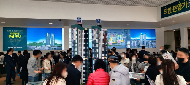 해운대역 푸르지오 더 원 견본주택에 방문객이 몰린 모습. 대우건설 제공