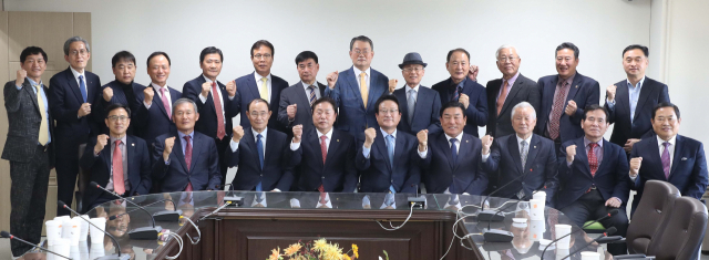 재부 경남향우연합회 유덕규 회장을 비롯한 회장단이 27일 오후 부산일보사를 내방했다. 정종회 기자 jjh@