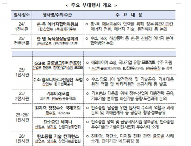 이어 안건 보고를 통해 산업부는 사전행사, 개막식, 콘퍼런스, 전시회, 부대행사, 연계행사, 폐막식 등 박람회 세부 프로그램 개최계획(안)을 전반적으로 발표하면서 박람회 개최까지 2개월이 채 남지 않은 만큼 행사준비에 만전을 기하겠다고 밝혔다. 특히 박람회 관심도 제고를 위해 정책 수요자 타겟형 뉴스레터 등 다양한 국내외 맞춤형 홍보활동을 전개하고, 연계행사인 뉴욕타임즈 ‘A New Climate’와 폐막식인 ‘드림콘서트’도 적극 활용하기로 했다.
