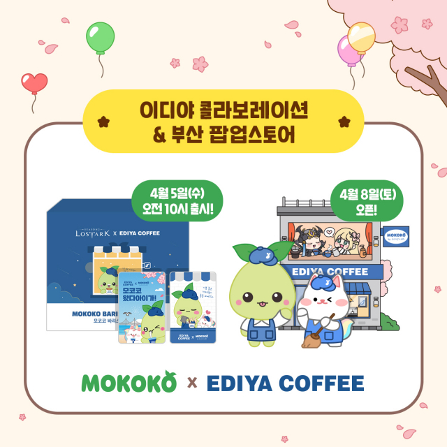 한편, 이디야커피는 4월 8일부터 한 달간 부산광역시 해운대구에 위치한 ‘이디야커피 부산달맞이점’을 ‘이디야커피X모코코 팝업스토어’로 운영한다. 자세한 내용은 4월 5일 로스트아크 이벤트 페이지를 통하여 확인할 수 있다.