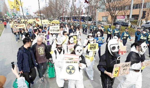 지난 11일 고리2호기 수명연장·핵폐기물반대 범시민운동본부는 부산 송상현광장에서 고리2호기 수명연장을 반대하는 시민대회를 갖고 가두행진을 펼쳤다. 부산일보DB