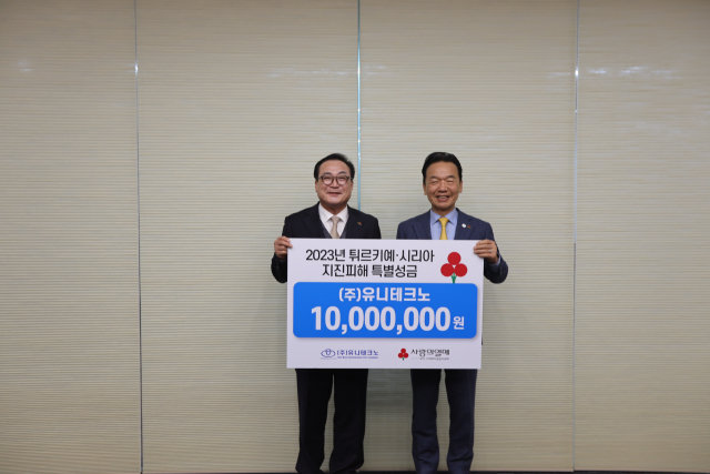 (주)유니테크노(대표이사 이좌영)는 지난 29일 강진으로 피해가 큰 튀르키예와 시리아 이재민 지원을 위해 써달라며 특별성금 1000만 원을 부산사회복지공동모금회(회장 최금식, 이하 부산사랑의열매)에 전달했다.