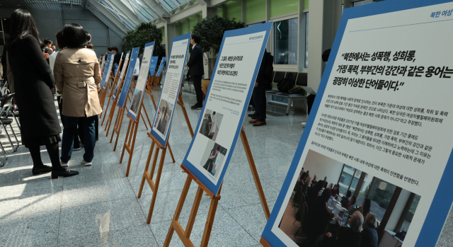 북한 인권을 위한 국제사회의 노력과 북한 여성 인권 실태를 주제로 한 전시회가 30일 오전 서울 여의도 국회 의원회관에서 국민의힘 태영호 의원실 주최로 열렸다. 연합뉴스