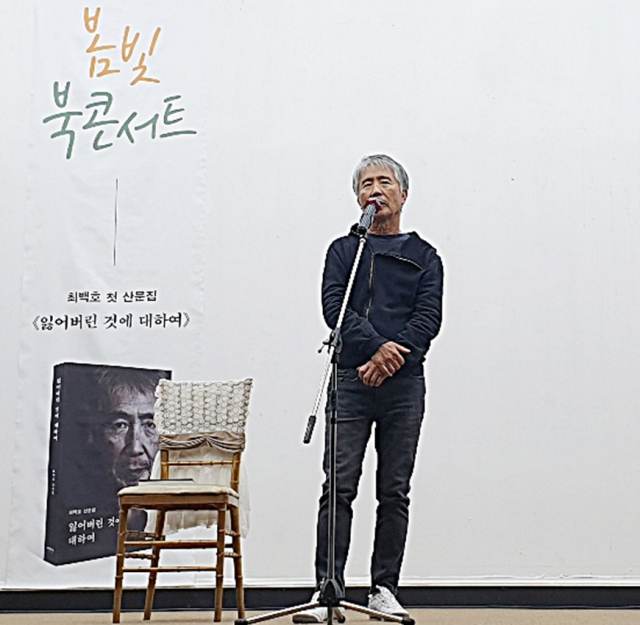 지난달 31일 부산일보 강당에서 최백호 첫 산문집 ‘잃어버린 것에 대하여’ 북 콘서트가 열렸다. 이 책은 1976년 노래 ‘내 마음 갈 곳을 잃어’로 가요계에 데뷔한 그가 47년 동안 걸어온 음악 인생 전반을 담는다. 좋은 가수가 되기 위해 한 고민부터 일상의 깨달음, 최근 후배 가수들과 함께 작업한 경험까지 책에 녹아 있다.