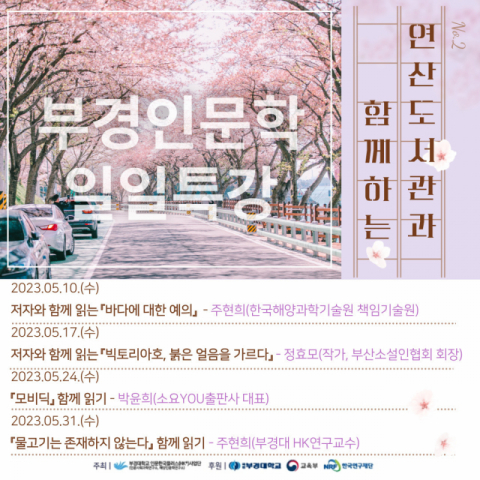올해는 5월 독서문화의 달을 맞아 바다와 관련된 책을 쓴 저자를 초청해 책에 관한 이야기를 나누는 강연을 마련했다. 부경인문학일일특강은 5월과 9월 각각 4회씩 운영 예정이다.