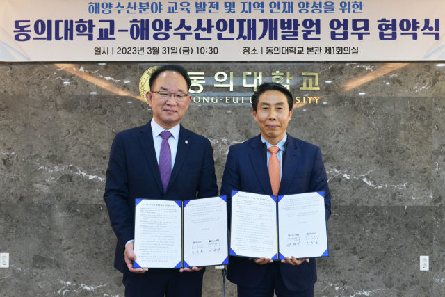 동의대학교(총장 한수환)는 해양수산인재개발원(원장 양병채)과 최근 동의대 본관 회의실에서 해양수산분야 교육 발전과 지역 인재 양성을 위한 업무협력 협약을 체결했다.
