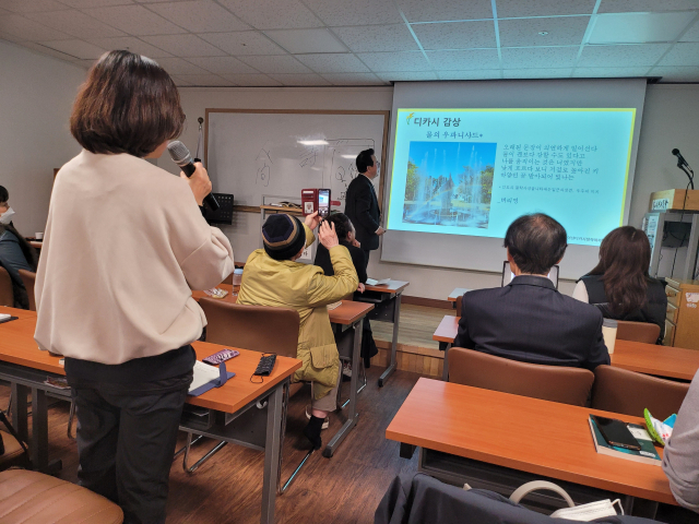 한국디카시학 부산지회 부산디카시창작아카데미(원장 손계정)는 6일 부산 부산진구 영광도서 9층에서 50여 명이 참석한 가운데 이어산 한국디카시학 발행인 강의로 제2기 디카시창작강좌를 열었다.