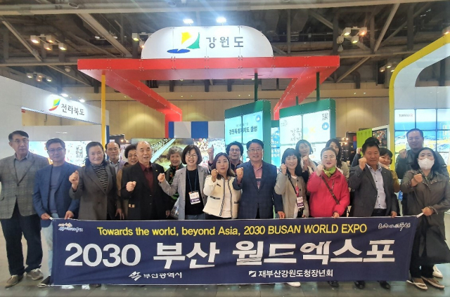 재부산강원도청장년회(회장 안정태)는 9일 부산 해운대구 부산벡스코에서 한국지방신문협회(회장 박진오 강원일보 사장)가 주최한 ‘제3회 대한민국 대표 축제박람회장’을 찾아 2030부산 세계박람회의 범국민적 유치 관심과 참여도를 높이기 위한 홍보 활동을 벌였다.