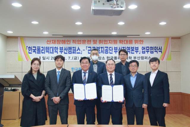 한국폴리텍대학 부산캠퍼스(학장 김용규)는 최근 산재장해인의 교육훈련 활성화를 위해 근로복지공단 부산지역본부(이사장 강순희)와 업무협약을 체결했다.