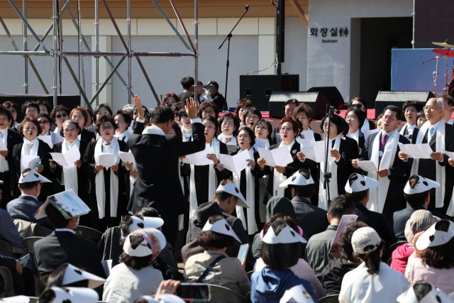 부산기독교총연합회가 주최한 ‘2023 부산 부활절 연합예배’가 9일 오후 부산진구 부산시민공원 다솜광장에서 열렸다.