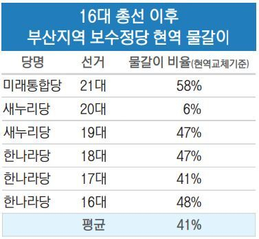 부산 핫이슈 보수 정당 '물갈이’… 16대 이후 절반은 갈렸다[총선 앞으로 1년]