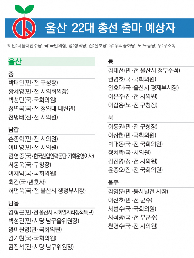 울산 남갑·울주, 치열한 공천 경쟁·접전 예고[총선 앞으로 1년]