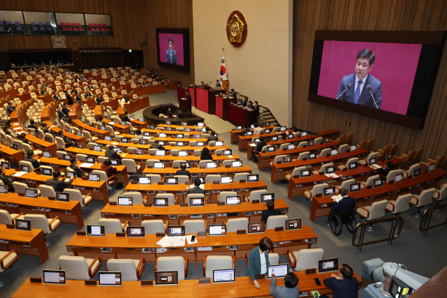 10일 오후 국회 본회의장에서 선거제도 개편을 위한 전원위원회가 열렸다. 연합뉴스 제공.