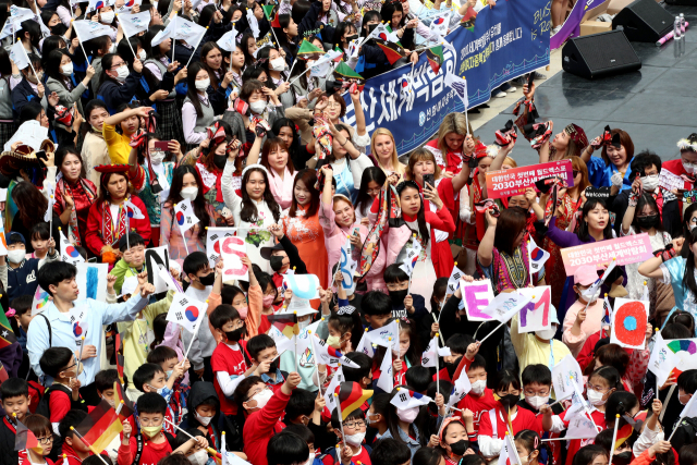 2030세계박람회(월드엑스포) 부산 유치에 대한 시민 열기가 뜨거워지고 있다. 지난 4일 국제박람회기구(BIE) 실사단이 도착한 부산역 광장에는 5500여 명의 환영 인파가 몰렸다. 실사단은 환영 인파에 큰 감동을 받았다는 소식도 들린다.