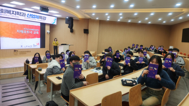 부산 남구치매안심센터는 최근 치매인식개선과 치매예방 활동을 위해 동명대학교 경영관 107호에서 사회복지학과 학부생 34명을 대상으로 치매 파트너 교육을 시행했다.