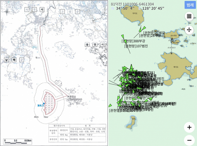대규모 풍력발전단지가 추진되고 있는 경남 통영시 욕지도 주변 조업 현황. 어민들은 이 일대를 경남 최고의 황금어장으로 꼽는다. 수협 제공