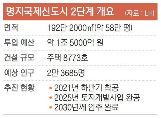 명지국제신도시 2단계는 192만 2000㎡(약 58만 평) 부지에 1조 5000억 원을 투입해 주택 8773호, 인구 2만 3685명을 수용하는 대형 도시를 개발하는 사업이다. 공동주택용지 분양이 마무리되면 단독주택용지, 근린생활시설용지, 상업·업무용지 등도 차례로 분양한다. 대규모 복합쇼핑단지 건립이 예정되어 있는데다 최근 가덕신공항 조기 개항까지 확정돼 명지국제신도시 2단계 공동주택에는 관심이 높다.