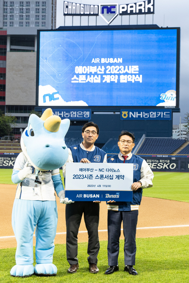NC 다이노스는 홈구장인 창원NC파크의 외야 펜스에 에어부산 홍보 시설물을 설치하고 NC 다이노스 홈페이지와 모바일 웹·앱 등을 통해 야구팬들에게 에어부산을 알리도록 지원한다. 이날 협약식에는 마호진 에어부산 영업본부장과 이진만 NC 다이노스 대표 등이 참석했다.