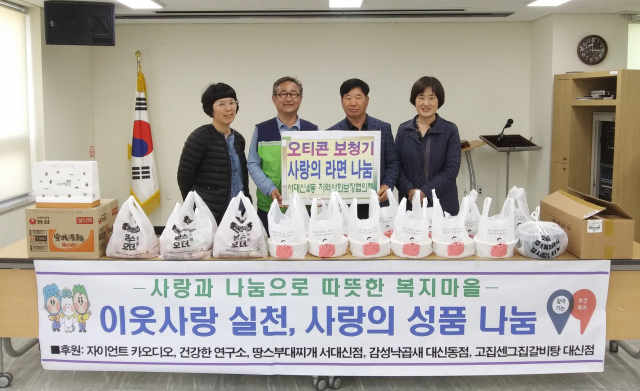 부산 서구 서대신4동 우리동네 역사알기 구덕골자원봉사캠프(대표 임병율)는 최근 건강한연구소(대표 최미진), 자이언트카오디오(대표 윤수정) 등에서 지원받은 성품을 저소득가구에 전달했다.