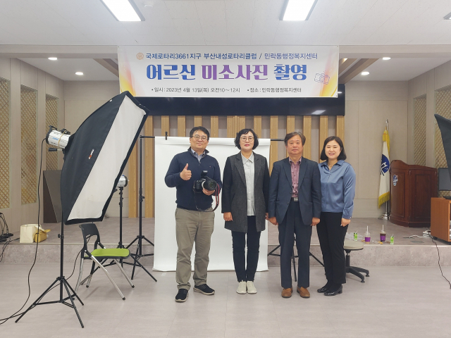 국제로타리 3661지구 부산내성로타리클럽(회장 오용웅)은 13일 부산 수영구 민락동 행정복지센터(동장 홍임이)와 ‘어르신 미소사진 촬영’을 행사를 가졌다.