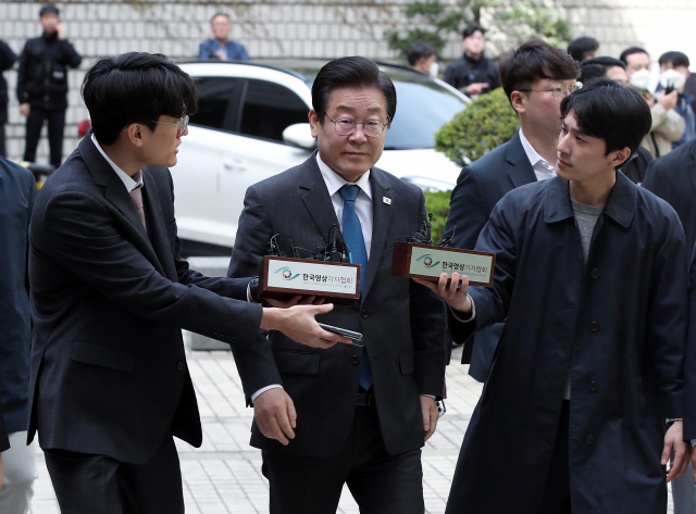 더불어민주당 이재명 대표가 지난 14일 서울 서초구 서울중앙지방법원에서 열린 공직선거법 위반 1심 공판에 출석하고 있다. 연합뉴스