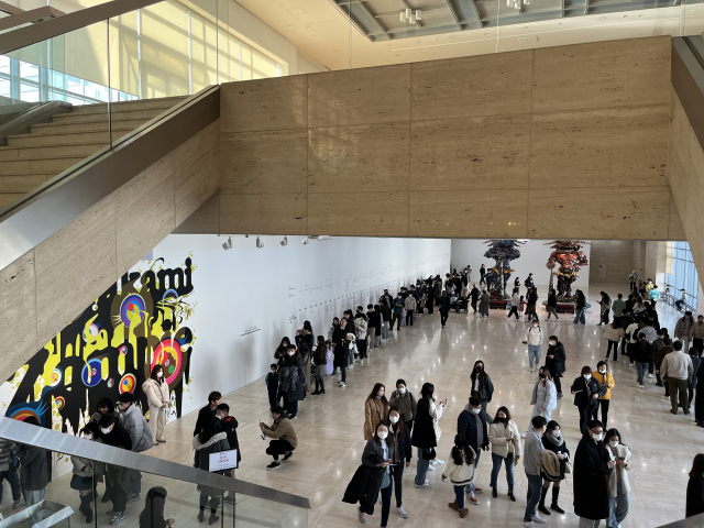 부산시립미술관 '무라카미 다카시'전을 찾은 관람객들이 전시장 입구에 길게 줄을 서 있다. 부산시립미술관 제공