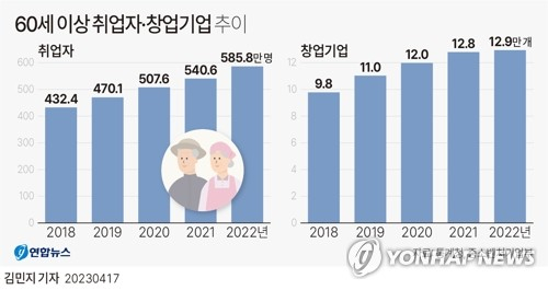 60세 이상 취업자·창업기업 추이. 연합뉴스 제공