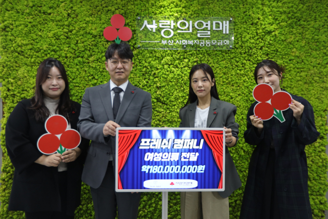 ㈜프레쉬컴퍼니(대표 최서온)는 지난 17일 부산사회복지공동모금회(회장 최금식, 이하 부산사랑의열매)에 총 1억 8000만 원 상당의 의류를 전달했다.