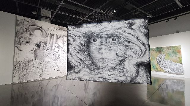 2022 부산비엔날레에 전시된 오우암 작가 그림에는 한국전쟁 전후 격변기 모습이 담겨 있다. 오금아 기자