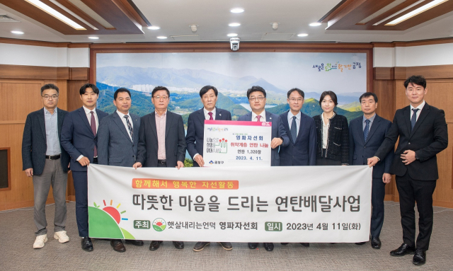 햇살내리는언덕 영파자선회(이사장 김종천)는 최근 물가 상승으로 난방에 어려움을 겪고 있는 이웃을 위해 연탄 1320장을 부산 금정구청(구청장 김재윤)에 지원했다.