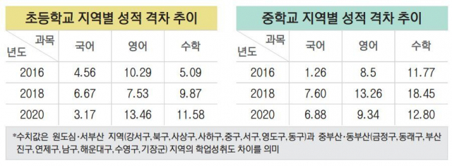 서부산·원도심-동·중부산 ‘중등 영어 성적 격차’ 2016년 8.5→ 2020년 9.34점 [부산 교육격차 토론회]