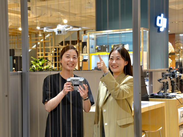 롯데백화점 부산본점 6층에 드론 전문 매장 ‘디제이아이(DJI)’가 문을 열었다. 롯데백화점은 다양한 카메라 드론, 핸드헬드 짐벌 제품 전시와 함께 직접 드론 작동을 시연할 수 있는 공간을 마련했다. 롯데백화점 제공