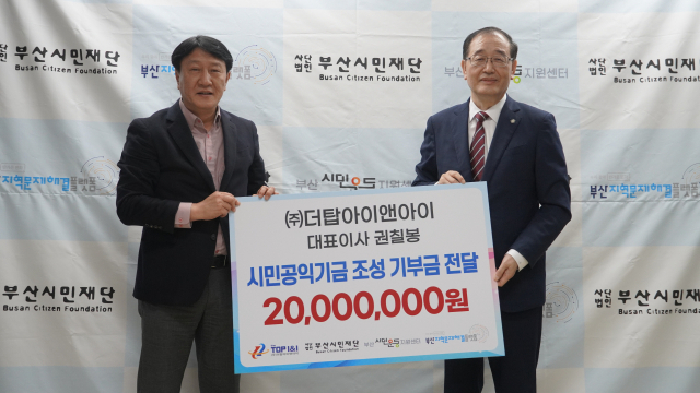 (주)더탑아이앤아이는 부산 지역 시민 사회 활성화를 위한 시민공익기금 모금에 2000만 원 기부를 약정했다. 또 (사)부산시민재단의 시민공익기금 조성에 협력하기로 확약하고, 지역 향토기업의 사회 공헌으로 확대하는 일에도 뜻을 모으기로 했다. 행사는 권칠봉 더탑아이앤아이 대표이사의 기부약정서 작성, 장준동 부산시민재단 이사장의 기부증서 전수, 기부금 전달 등으로 진행됐다.