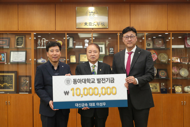 동아대학교(총장 이해우·왼쪽)는 이성우(가운데) 대신금속 대표가 ROTC(학군단) 발전기금 1000만 원을 기부했다고 24일 밝혔다.