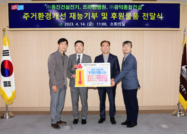 (주)동진건설전기(대표 김수현)·(주)광덕종합건설(대표 김종환)·프라임병원(병원장 최봉식)은 최근 주거환경개선을 위한 재능기부와 쌀 등을 부산 사상구청(구청장 조병길)에 기탁했다.
