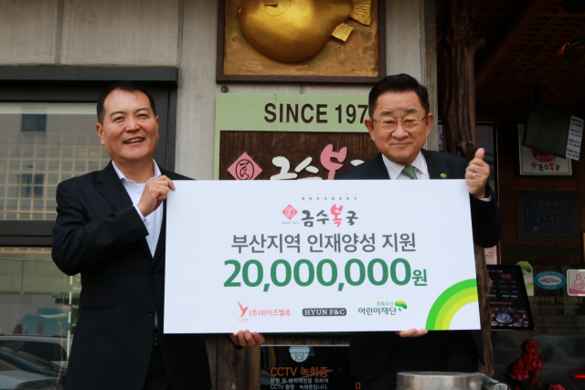 부산 금수복국(회장 유상용, 대표 유성현)은 지난 19일 초록우산 어린이재단(부산지역본부장 노희헌)에 부산 지역 인재 양성을 위한 후원금 2000만 원을 지원했다고 밝혔다.
