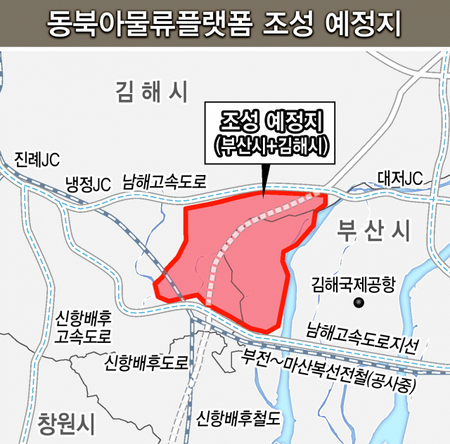 부산시와 김해시는 24일 부산 강서구 죽동동·제2에코델타시티와 김해 화목동에 각각 14㎢, 총 850만 평 규모의 초광역권 물류지구인 ‘동북아 물류 플랫폼(가칭)’을 구축한다고 밝혔다. 여기에는 국제물류단지와 전문인력양성단지, 주거단지, 연구단지가 들어설 예정이다.