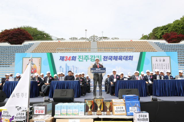 진주강씨 중앙종회(청장년회장 강석중)는 지난 23일 부산 아시아드 경기장에서 강재준 부산시청년회장 등 18개 시도 1300명이 참석한 가운데 제34회 진주강씨전국체육대회를 가졌다.