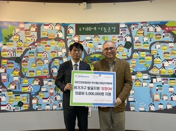 이날 전달된 기금 500만 원은 김해시 저소득층 중 긴급하게 의료비 지원이 필요한 가정에 쓰일 예정이며, 복지관과 연계해 추가 맞춤형 복지 서비스도 제공할 계획이다. 장수목 본부장은 “위기 가정에 대한 의료비 지원으로 보험자로서 더 건강한 사회를 만들고, 앞으로도 사회적 약자에 대한 지원을 지속적으로 추진하겠다”고 밝혔다.